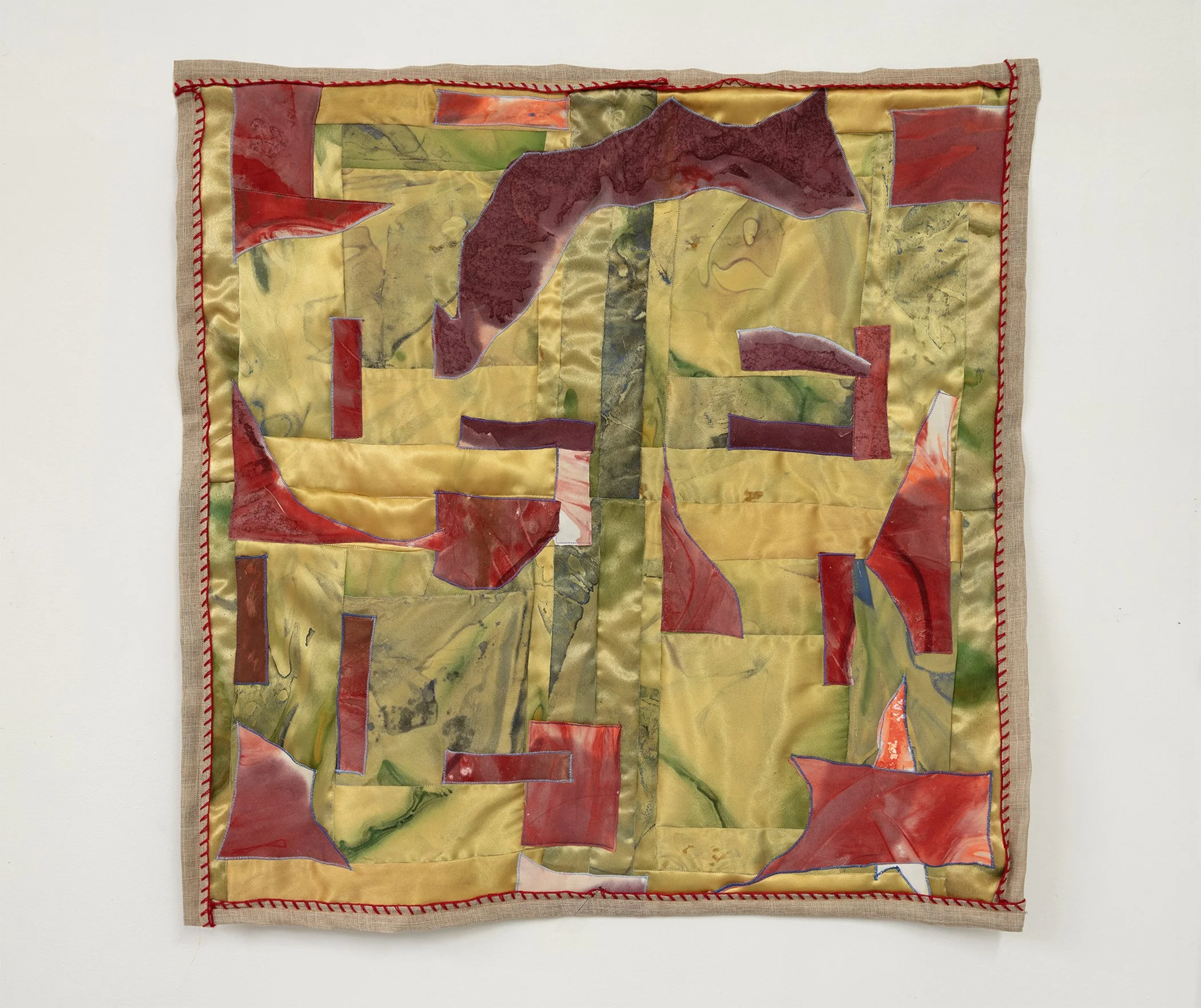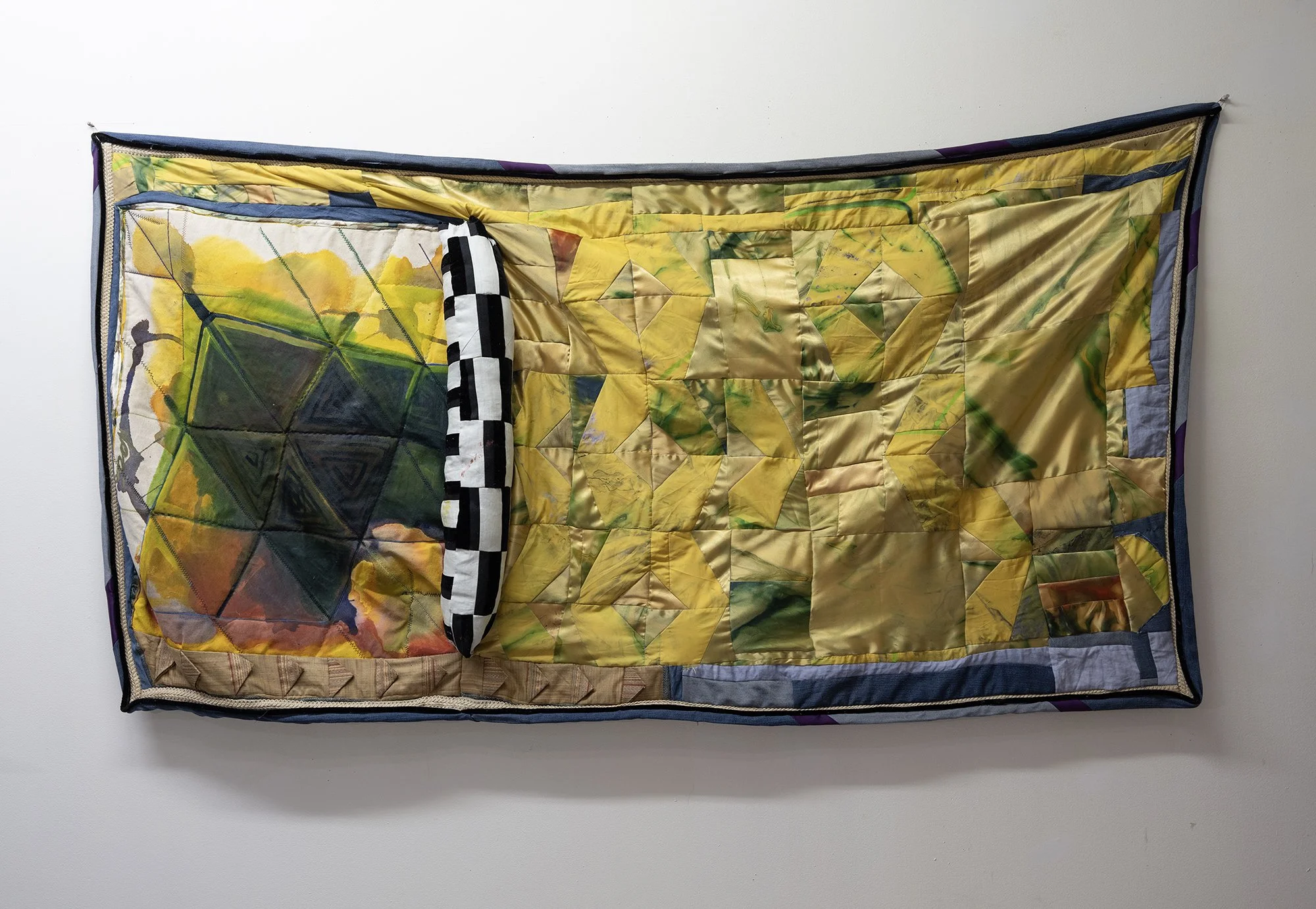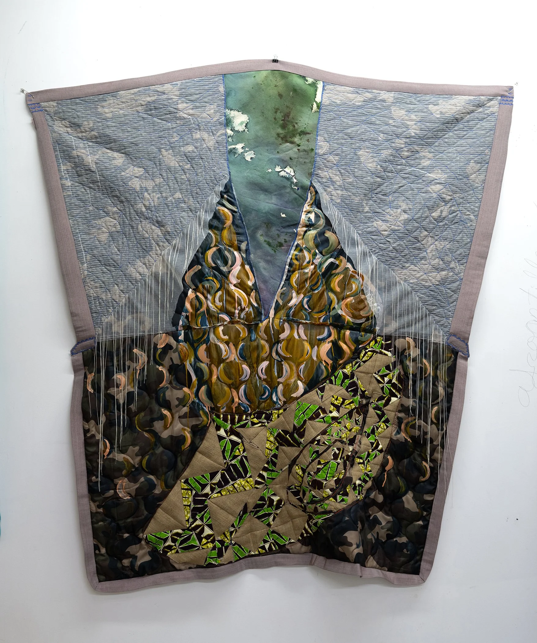 2025, Igbin (snail over the forest floor), 71 x 56 inches, mixed media quilt, and acrylic on